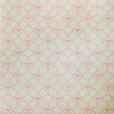 A geometric honeycomb interspersed with bees, created using the traditional surface print technique for a hand-stamped finish.