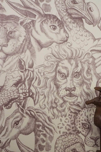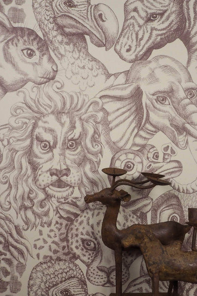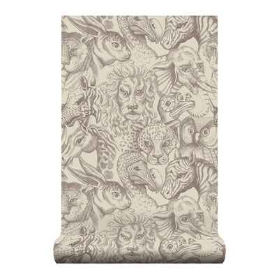 Wildmore's unique Rara design is full of curious creatures. This wallpaper is in the perfectly subtle palette of off white, offset by drawings in a oak brown. Each hand sketched animal has its own wonderful character based on 17th century explorers' etchings. With their oddly anthropomorphised features, these creatures will add playfulness and spark joy on any wall. It is a wonderful design for the nursery you have always dreamed of or a quirky addition to your dining room.