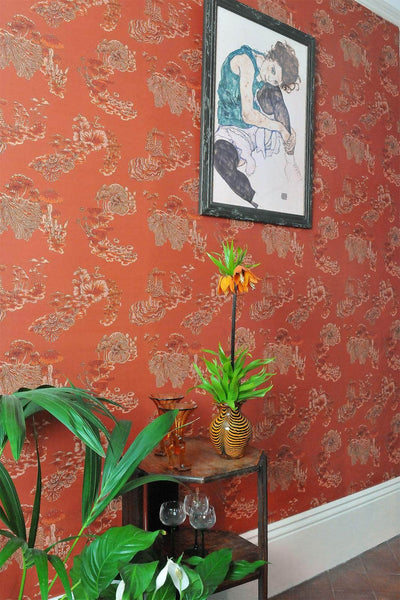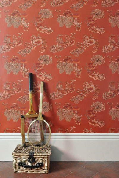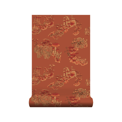 This quirky and enchanting Fungi wallpaper in is named after the genus of fungi with a rich, toasted orange pigment. Orange hues are used in interiors to spark joy, conversation and an appetite, making this paper ideal for your dining room or kitchen as well as being perfect for adding some warmth to any room. The mushrooms and fungi were initially painted in the Wildmore studio before being transformed into a wonderful wallpaper design.