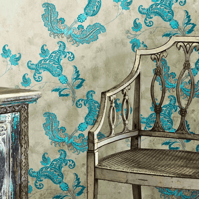 Inspired by a collection of antique Indian textiles, this pretty paisley features a super bright print on a softly aged background.
