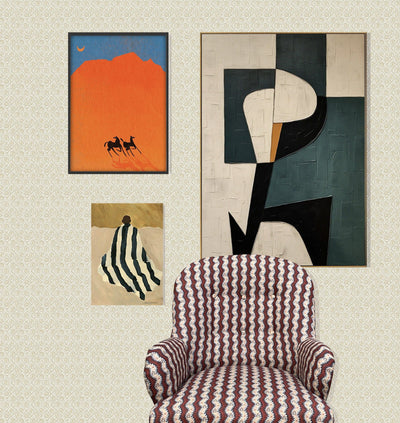 Inspired by the charming border of a 1970s tablecloth, Arthur & Ruth is a playful geometric pattern with a nostalgic twist. Its small-scale design adds just the right amount of texture and character to a space — subtle yet full of interest, making it ideal for both feature walls and entire rooms.