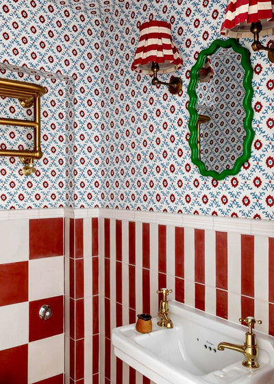 Created with just three elements, Folk Flower is a charming potato-printed floral. The wallpaper is printed in England using a traditional technique to give the textured feel of a hand-blocked design. British decorative artist Tess Newall’s collection of wallcoverings and homewares draws inspiration from her hand-painted murals and from her personal collection of antique textiles and prints.