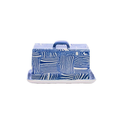 Hand built stoneware butter dish created by using a slab building method. Each butter dish benefits from the technique used as it creates a one off piece, with varying patterns. The butter dish is designed to hold a 250g block of butter, and each butter dish is made by Scarlett in PLOP's pottery studio in Bristol. Dishwasher safe although hand washing is recommended as the best method of care.
