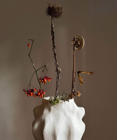 This textured vase is 3D printed using recycled PLA - a biodegradable and eco-friendly material derived from renewable resources like cornstarch or sugarcane.