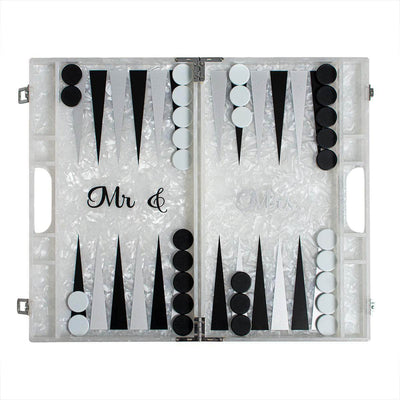 This marble white acrylic set which features ‘Mr & Mrs' is the perfect romantic gift for a happy couple or newlyweds! The set features silver and black points and with silver and black writing.