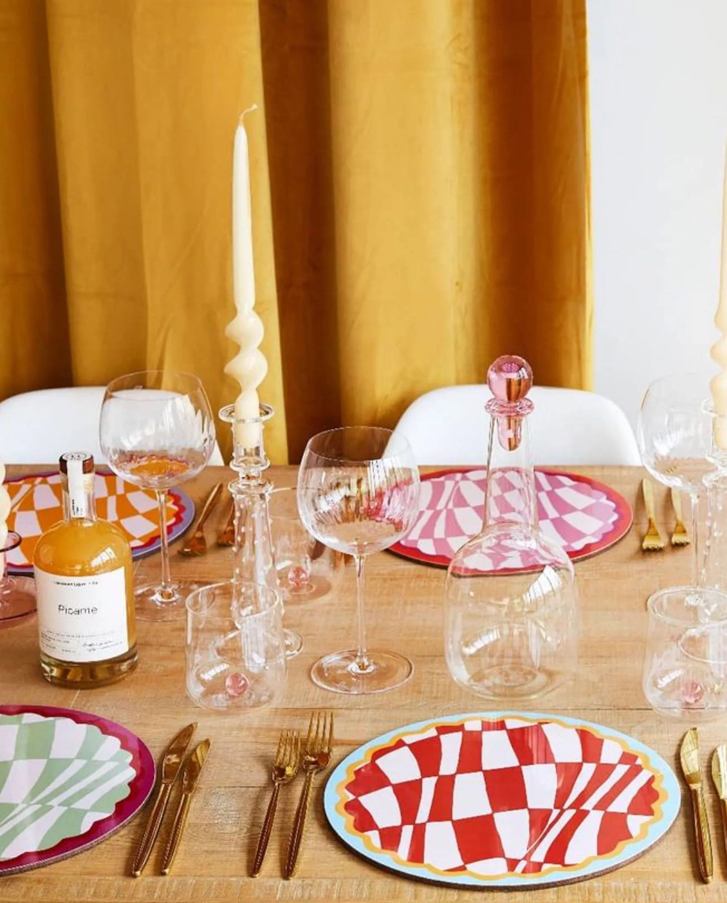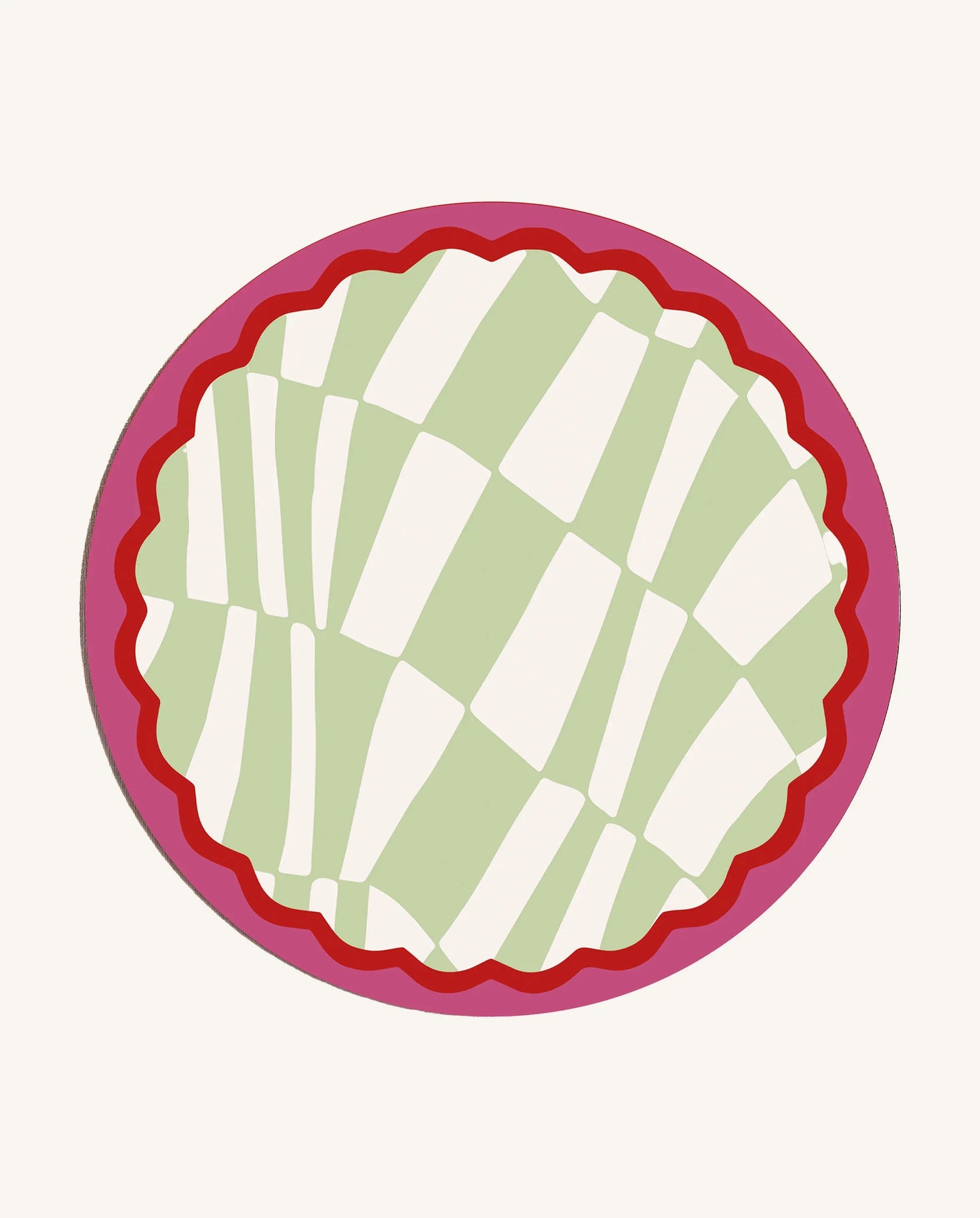 Add a pop of colour to your table with the sell-out Checkmate set of six eucalyptus, gloss-finished placemats. The quirky, geometric pattern is perfectly complemented by rich summer hues and makes for the ideal addition to an off-beat supper party. Try pairing with our matching coaster set.