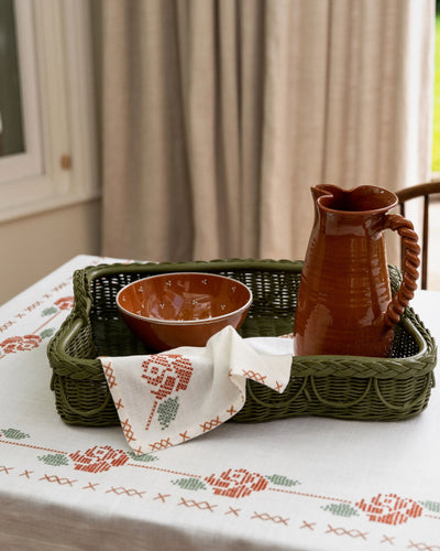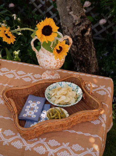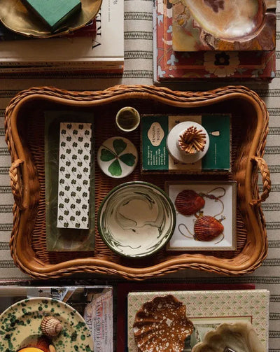 Hand-crafted from 100% natural rattan, featuring fixed handles and a beautifully braided, scalloped edge, the Hadley tray is the chicest way to serve breakfast in bed, cocktails at sunset, a TV supper, or to fill with ornaments and display on your coffee table. Now available in Green.