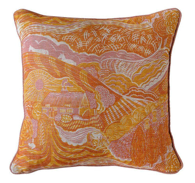 The Plough Small Piped Cushion in Ethel Pink and Harvest Gold