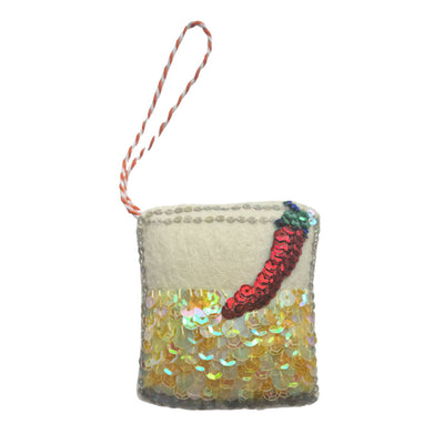Bring a fiery kick to your holiday decorations with our Spicy Margarita Ornament! This sequinned ornament adds a touch of fun and flavour to your tree, perfect for those who love a festive twist on traditional decorations. Spice up your holidays with this must-have ornament!