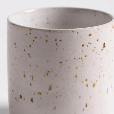 The espresso cup comes in an off-white color, with a subtle speckled finish. Each piece is unique, handcrafted by Greek ceramicist George Vavatsis in his Thessaloniki-based studio. Due to the handcrafted nature of this item, expect slight variation in the appearance of each unique piece.