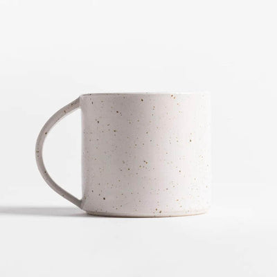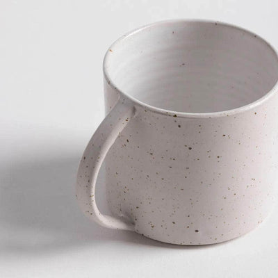 The ceramic mug comes in an off-white color, with a subtle speckled finish. Each piece is unique, handcrafted by Greek ceramicist George Vavatsis in his Thessaloniki-based studio. Due to the handcrafted nature of this item, expect slight variation in the appearance of each unique piece.