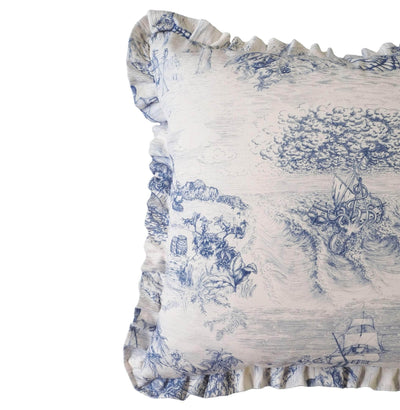 Wildmore's iconic Navigo Navy design was created from hand drawn illustrations dreamt up in our studio in Lincolnshire. Curious creatures and myths of the sea come together to create a whimsical take on a Toile de Jouy. This delightful design has been printed onto a luxurious eco cotton and hand made into the perfect sized Navigo Navy Ruffle Cushion. This little pillow is ideal for your snug chair or scattered among your curated collection of cushions.