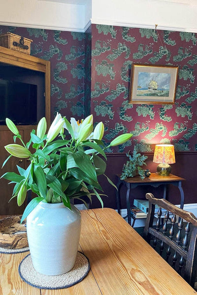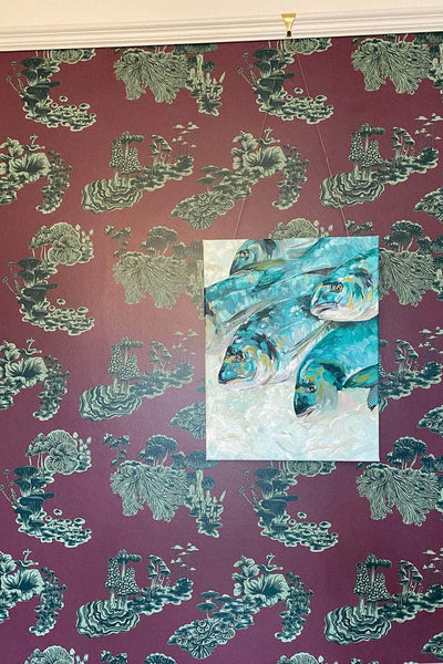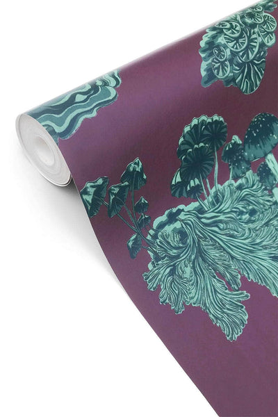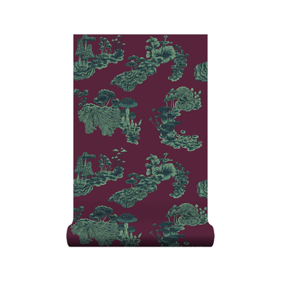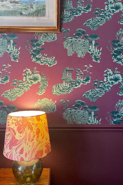This rich and quirky wallpaper is perfect for adding an indulgent touch to your space. The deep burgundy and greens have an earthy character allowing the wallpaper to be paired with a variety interior styles.  Our Fungi print is based on time-honoured design and exudes whimsy in it's unusual artwork. The mushrooms and fungi were initially painted in the Wildmore studio before being transformed into a wonderful wallpaper design.