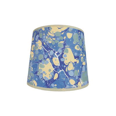 Each Periwinkle Marmor Lampshade is crafted from hand marbled paper, making each one a completely unique piece. We have worked with a local artisan to design these beautiful lampshades. The Whimsical Marbler has created these papers for us in her studio in Lincolnshire. She expertly hand creates each pattern with the ancient art of water marbling. We then hand craft each shade in the Wildmore studio, finishing the edge with a sage cotton trim.