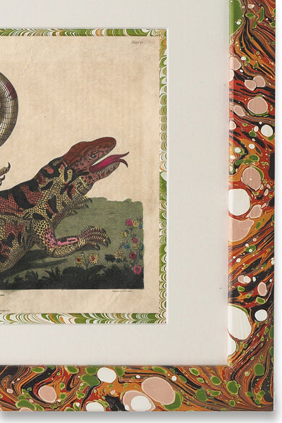 Each Buffon No.14 Igneus frame is individually painted using the ancient art of hand marbling, making every one completely unique. The Giclée reprint is from Wildmore's large collection of original prints from ‘Buffon’s Complete Works’. Georges-Louis Leclerc, Comte de Buffon was one of the most noted and celebrated naturalists of his time. Each of the original 1816 illustrations was printed and then hand painted in water colour in Spitalfields, London.