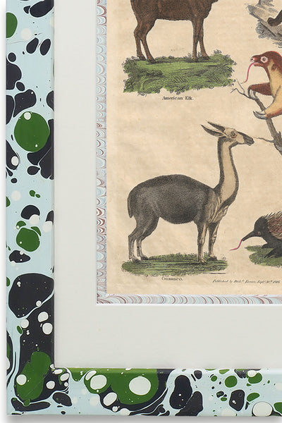 Each Buffon No.34 Glacier frame is individually painted using the ancient art of hand marbling making every one completely unique. The Giclée reprint is from our large collection of original prints from ‘Buffon’s Complete Works’. Georges-Louis Leclerc, Comte de Buffon was one of the most noted and celebrated naturalists of his time. Each of the original 1816 illustrations was printed and then hand painted in water colour in Spitalfields, London.