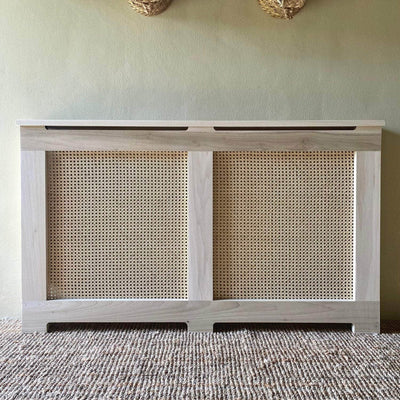 These bespoke radiator covers are made from beech wood and lined with cane. We produce them in raw wood, ready for you to paint.