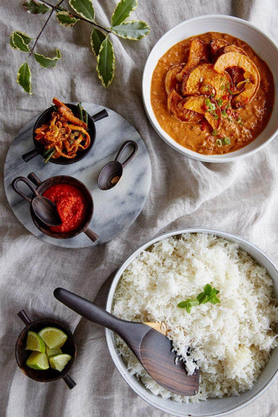 We also use them in the kitchen to toss vegetables in a roasting tray. It's a lovely piece that is versatile to use and to take straight to the serving table. We eat a lot of rice so this one is for all the fellow rice lovers out there. These pieces have been beautifully carved and are a perfect gift for a foodie.