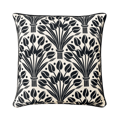 In black and white this bold-scaled floral design works perfectly on a large cushion, bringing a burst of joyful charm to any room. Printed in the UK on both sides and designed after a visit to a Mexico City flower market, this Tulips cushion cover is crafted from a hard-wearing linen blend, featuring a hidden zip closure at the bottom. Printed on both sides and finished with black piping.