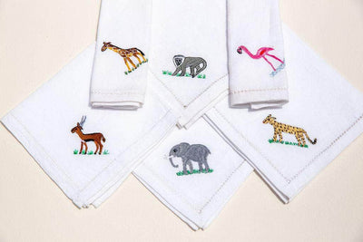 The hand-embroidered Savannah napkins are inspired by the beautiful nature and wildlife of Kenya. Each piece is uniquely and delicately done by the hands by their talented artisans on 100% natural linen.