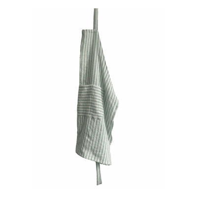 Full apron in striped linen. Beautifully soft and easy to care for, the linen apron is a stylish and functional must have item to protect your clothes while cooking, crafting, gardening and more. Designed to have a unisex fit, and with a large front pocket that has several useful sections.Made from 100% washed linen. Measures approximately 82cm wide x 86cm long (each apron is made bespoke by hand so may vary slightly). All linen products can be machine washed at 30 degrees.