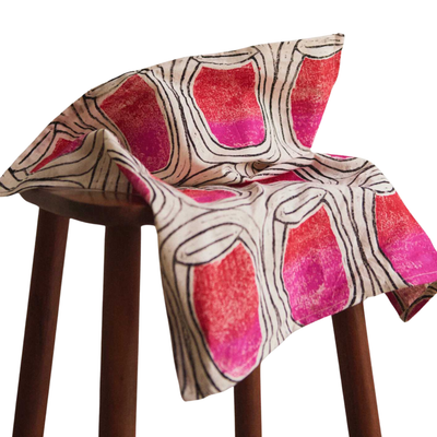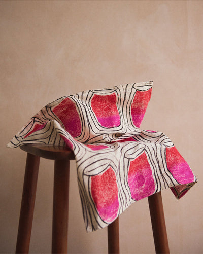 Long haul flights, sunsets, hot towels, little bags of peanuts, movies. A childhood spent traveling overseas. 4 x Napkins block printed in Nic’s London studio.