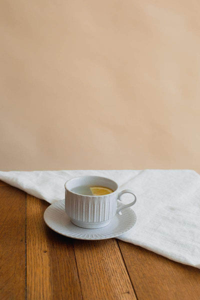 Straight cup and saucer set from the Shush Grace collection is made by Maikokoro pottery in Japan. It has a simple design with the details of straight lines – the ‘ears’ shows the vintage feature to complete a lovely tea cup set.
