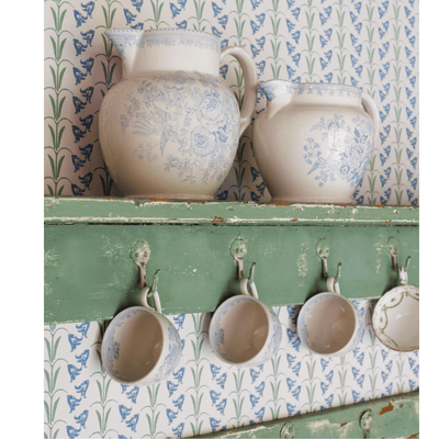 A celebration of our favourite Spring bloom, this design features stripes of stylised bluebells printed using surface rollers for a painterly feel and a charming hand-blocked finish.