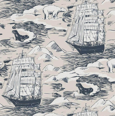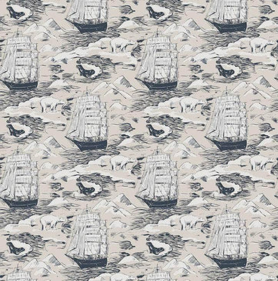 Rare and full of character, this early 1900s French hand-painted scenic expedition design holds history and adventure in its strokes. Created on soft chalky paper, neutral tones of warm grey, ice white & charcoal compliment the vintage illustrative storybook feel.