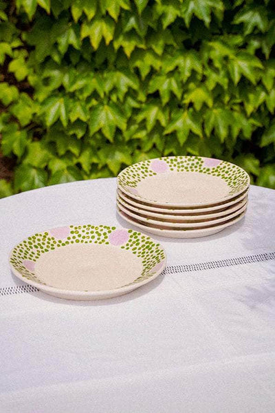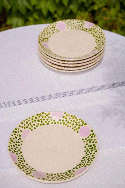 Hand-thrown earthenware plate made in Aubagne at the Ravel workshops and glazed by Table in olivine green and lilac. Each piece may vary slightly in size, color, or finish as everything is handmade.
