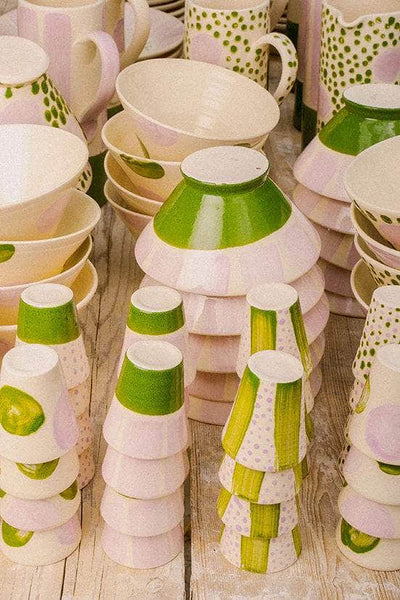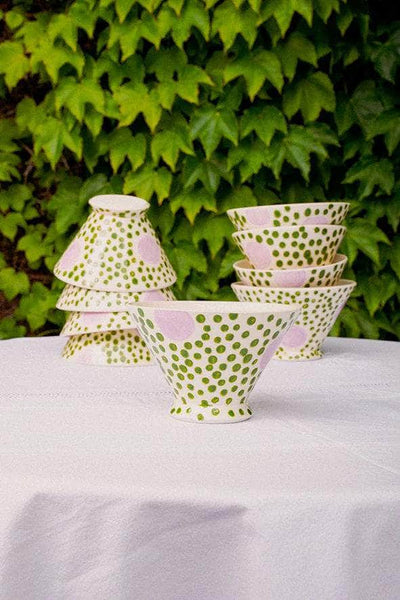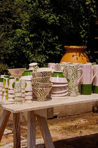 Earthenware bowl hand-turned in Aubagne in the Ravel workshops and glazed by Table in olivine green and lilac. Each piece may vary slightly in size, colour or finish as everything is handmade.