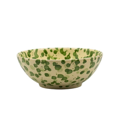 This lovely soup bowl is a must on any table. Characterised by a distinctive 2 tone Tuscan green on a soft yellow base splatter design, its versatile and simple shape will suit a variety of delicious dishes, from hearty salads and perfect soup creations to indulgent homemade desserts. See our Classic dinner plate to complete the look.  All products are 100% lead free and approved for alimentary use.