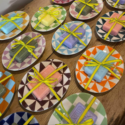 Ceramic soap dish hand painted in the studio by Hannah