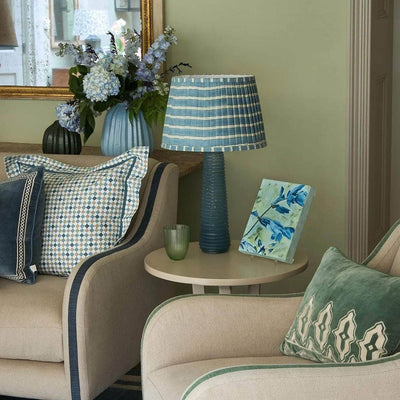 Edo Stripe Pleated Lampshade - Blue and Sage Green