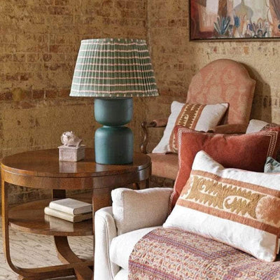 Block printed by hand in India with a pleated finish, the Edo Stripe Lampshade is guaranteed to elevate any lamp base in three colourways With clean lines and bold tones, the Edo Stripe design suits both classic and contemporary interiors.
