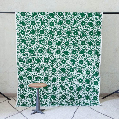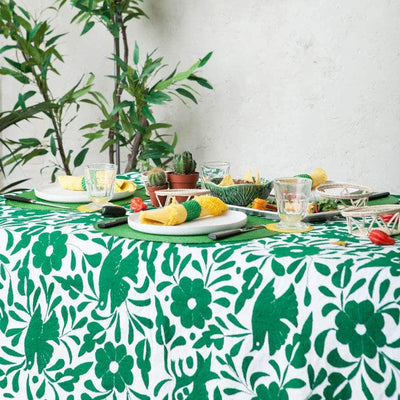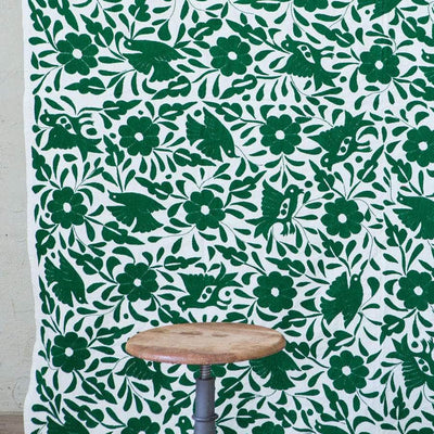 Hand embroidered by a group of 10 men and women from the state of Oaxaca. The fabric is drawn by hand with figures of birds and flowers, flora and fauna that live in the community where the artisans are from, commonly they embroider what they see around them.