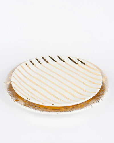The classic hero plate is hand painted with love in a pure gold splatter design, in Greece. More than just a plate, it's a truly unique statement piece that will infuse any space with personality and spark a conversation.