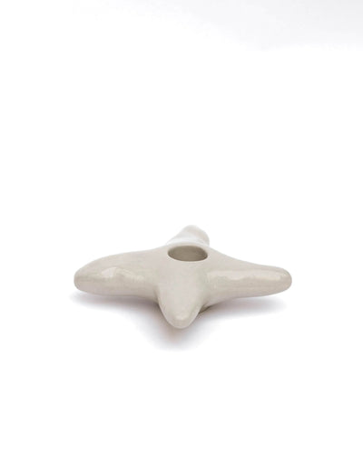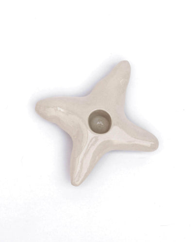 Beige stoneware candle holder, featuring a 4-point star design, ideal for adding an elegant and warm touch to your home.