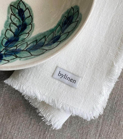 These fringed edged linen napkins are made from premium linen in Europe. The fringed napkins add a relaxed and sophisticated feel to any table setting.