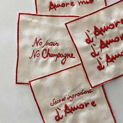 Introducing Musae Studio's L’Amore set of 4 cocktail napkins, made from a cream cotton fabric. These napkins add a touch of romance to your cocktail hour!