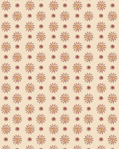 Brighten your space with Sunshine Masquerade, a wallpaper that radiates joy and warmth. Featuring a sun motif with a delightful face, this playful design is inspired by the lively spirit of the circus.