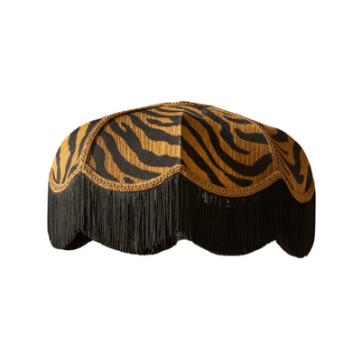 Tiger stripes + teasy tassels = perfection. This playful lampshade is handcrafted in the most luxurious velvet featuring bold stripes that have been colour-matched to emulate the coat of the Indian tiger. We’ve kept the braiding and fringe understated, because this pattern deserves to be the star of the show.