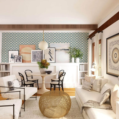 Just as Mondrian mirrored the pulsating rhythms of boogie-woogie, this wallpaper captures the essence of lively choreography. Each wiggly squiggly shape is a nod to the spontaneous and vivacious spirit of the kitchen disco, turning your space into a stage where the dance of lines becomes the heartwarming backdrop to your daily waltz. Experience the fusion of art and rhythm, inviting movement and joy into your living space.