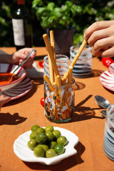 Inspired by the dynamic and colourful Spanish coast of Valencia, where the ceramics are handmade in a small family-run workshop.