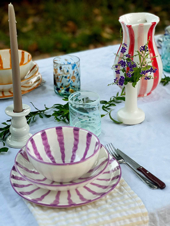 Inspired by the dynamic and colourful Spanish coast of Valencia, where the ceramics are handmade in a small family-run workshop. The warm shades mirroring the bright umbrellas that line the beaches.