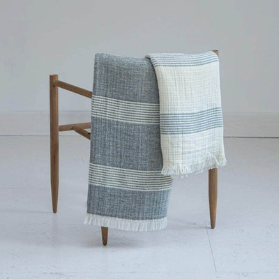 This cotton blend throw makes a beautiful addition to any home space. Its simple yet elegant design features a stripe block pattern and surrounding fringe. Its super soft fabric blend also offers the ultimate comfort. The throw is perfect for dressing a bed or sofa, or taking outside to keep you warm.