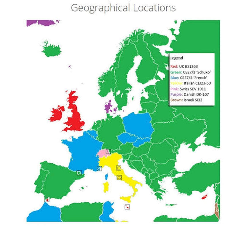 A CEE7/3 'Schuko' socket can only be used in the green countries. Never attempt to use incompatible components together. If you live in a country that does not use a CEE7/3 'Schuko' plug and socket, please contact hello@maisonflaneur.com and we can send a quotation for the correct appendages required!