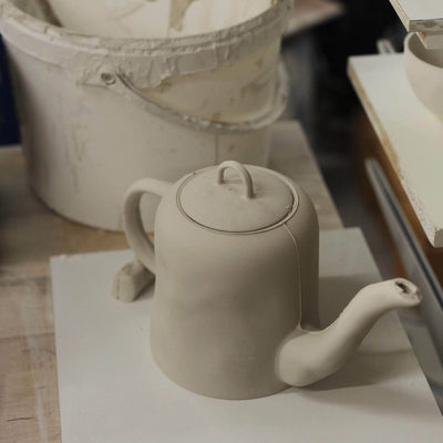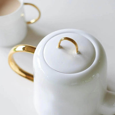 Designed with the perfect pour in mind and made from the same crisp white fine bone china as their existing tableware, Feldspar's teapot has an elongated spout and elegant straight sides with a dimpled tactile finish and hand painted handles and spout detailing. Holds 4 cups happily, pours like a dream. Available in either Cobalt or 24ct Gold. Fine Bone China Handmade in Stoke-on-Trent Hand-painted in the Devon workshop Gift boxed in a bespoke gold foiled grey-board stitched box 1l capacity
