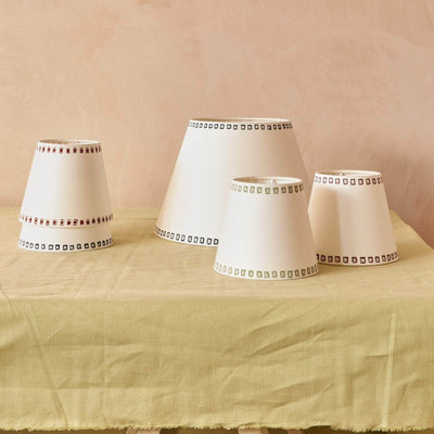 These cream cotton lampshades are hand made in England. All of the sizes have removable reducer rings, so they’re suitable for UK and EU lamps.
