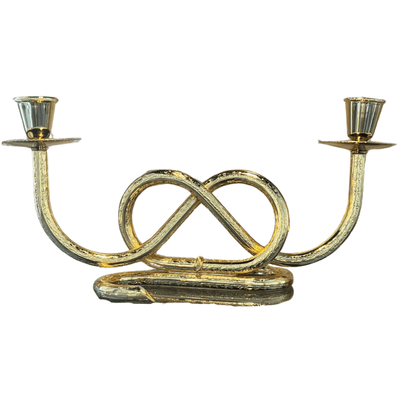 A beautiful antique pair of candlesticks in a serpentine design, found by Andria, modernly updated in 18-karat gold plate.